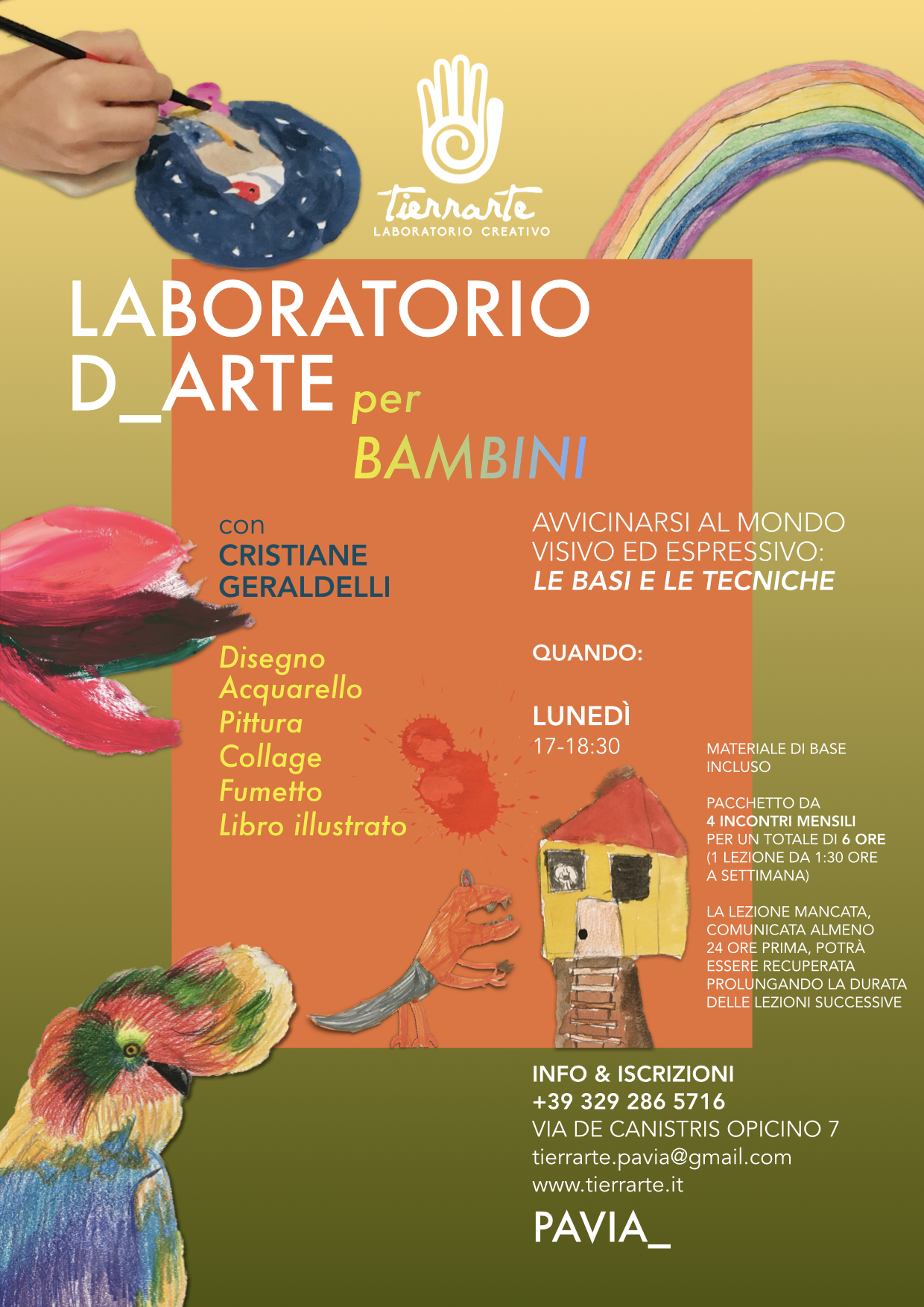 Il laboratorio si pone lʼobiettivo di far avvicinare i piccoli artisti alle tecniche di disegno e allo sviluppo di una espressione personale, con un atteggiamento libero e divertito, con uno sguardo particolare sul mondo della fantasia e del gioco di ognuno… con tanta gioia, nuove scoperte e spazio alla creatività.